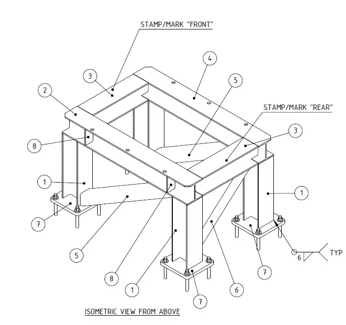 Because our design adheres rigorously to Australian standards and supplier recommendations, we also include specific provisions for hold-down bolts. To provide you with a clearer understanding, you’ll also find visual representations below, including a side view and a 3D depiction of the winch frame.